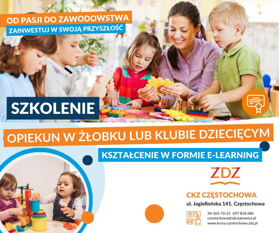 Zapraszamy na kurs "Opiekun w żłobku lub klubie dziecięcym" kształcenie w formie e-learning/szkolenie indywidualne - już nie musisz czekać aż zbierze sie grupa.